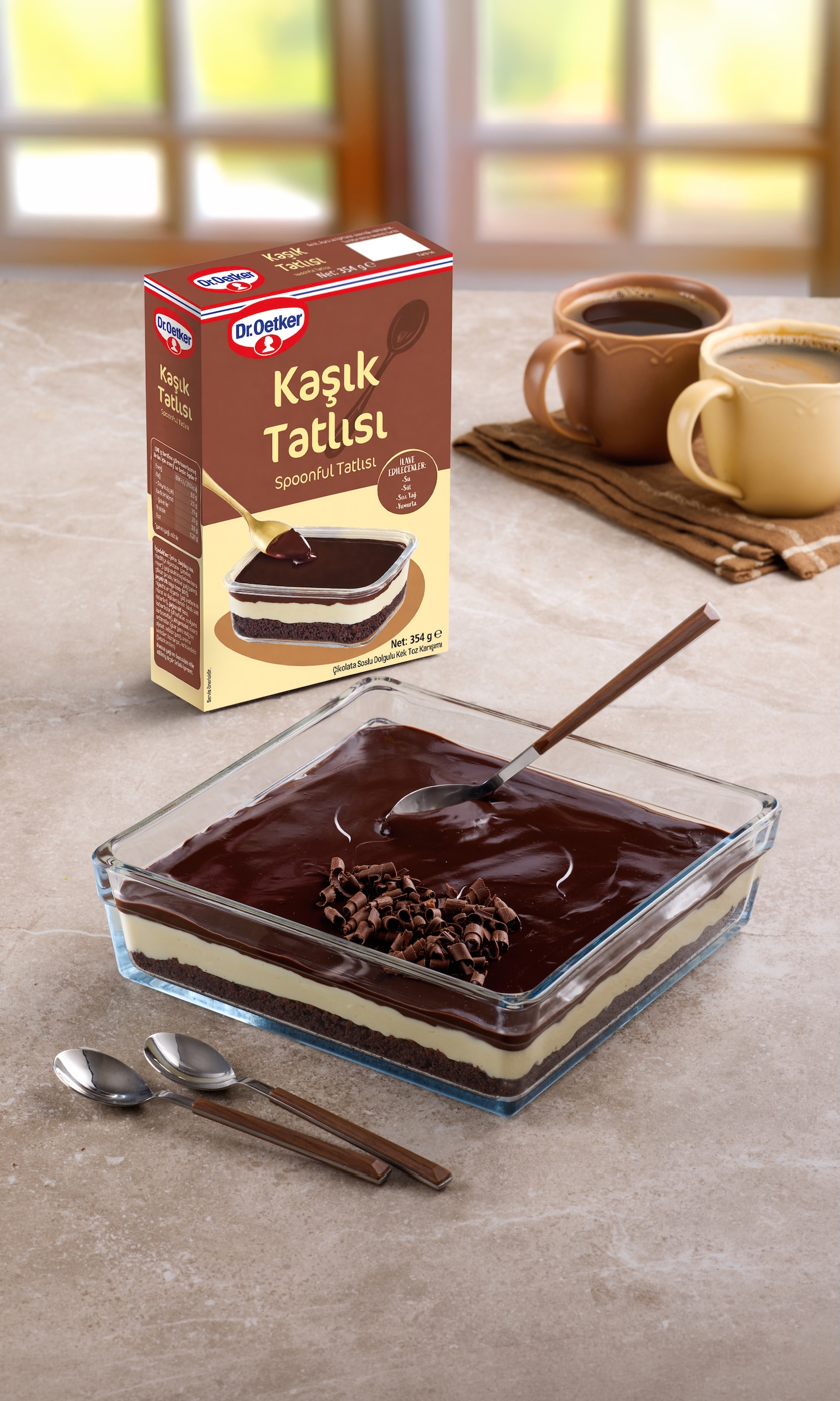 Yeni Dr. Oetker Kaşık Tatlısı, çikolata sosu, krema dolgusu ve çikolatalı keki ile her kaşıkta zengin bir tatlı keyfi sunuyor. Ürün; dışarıdan yalnızca su, süt, sıvı yağ ve yumurta eklenerek kısa sürede hazırlanabiliyor ve hem günlük tatlı istekleri hem de misafirlere ikram için ideal bir alternatif oluşturuyor.