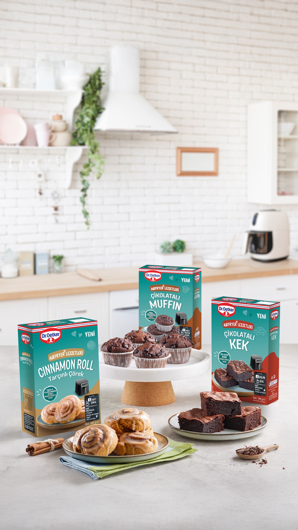 Dr. Oetker, mutfaklarda yükselen air fryer trendine özel olarak geliştirdiği Airfryer Lezzetleri Serisi ile pratik tatlı hazırlama deneyimini yeniden şekillendiriyor. Seride yer alan Cinnamon Roll (Tarçınlı Çörek), Çikolatalı Muffin ve Çikolatalı Kek çeşitleri, tüketicilere hızlı ve zahmetsiz bir lezzet keyfi sunuyor.